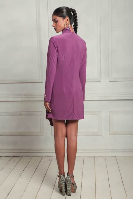 Buy_Couché By Anandini_Purple Pashmina Mandarin Collar Punto Draped Blazer Dress _Online_at_Aza_Fashions