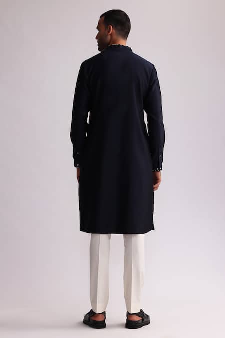 Blue chanderi kurta featuring threadwork dot and abstract patterns. Paired with matching pants.