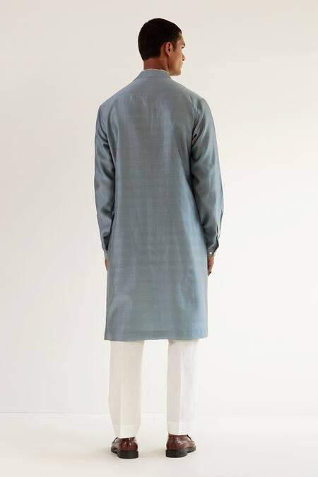 Powder blue chanderi abstract embroidered kurta with mandarin collar. Comes with pant.