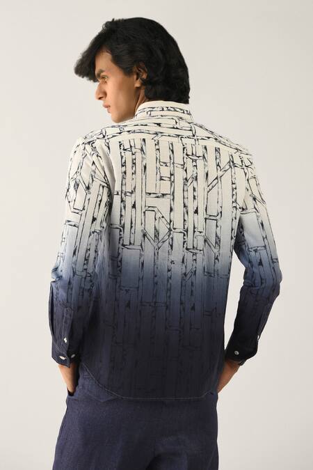 Multicolored ombre shirt with all-over tie-dye pattern, pleat panels, full sleeves and button placket.