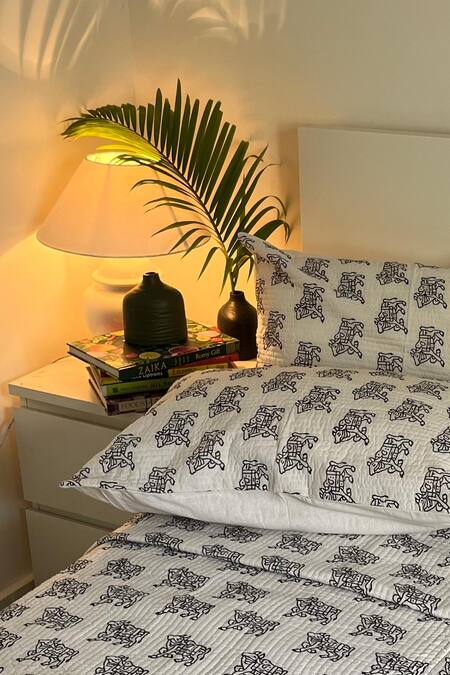 Buy_Cocobee_Black 100% Cotton Hand Block Print Cow Bedcover Set_at_Aza_Fashions