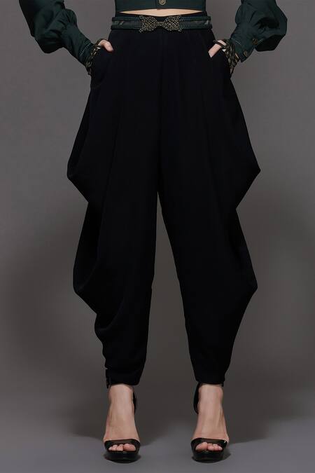 Buy_S&N By Shantnu Nikhil_Black Cowl Draped Pant_at_Aza_Fashions