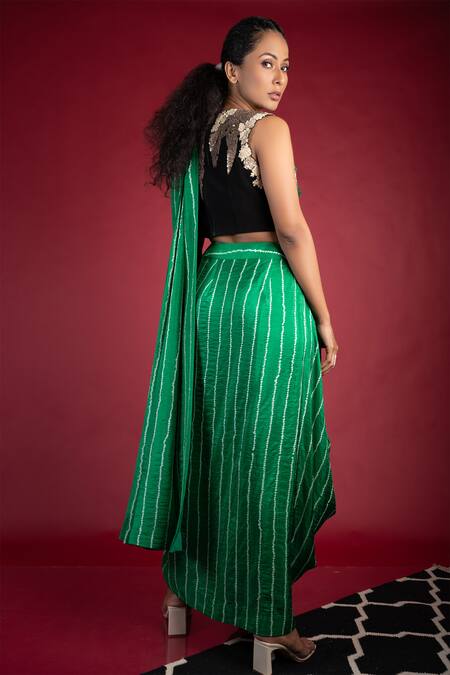 Green bandhani cowl saree. Comes with blouse in french knots and applique work.