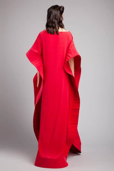 Housewine crepe kaftan with side thigh-high slit & sculpted wave-like detail.