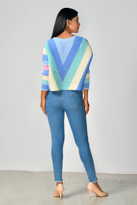 Buy_Crimp_Sky Blue Polyester Round Neck Chevron Pattern Top_Online_at_Aza_Fashions