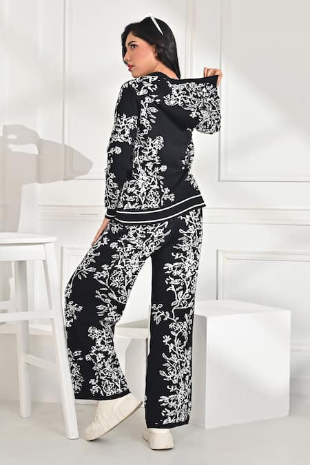 Buy_Crimp_Black Polyester Embroidery V-neck Myra Floral Pattern Hoodie And Pant Set_Online_at_Aza_Fashions