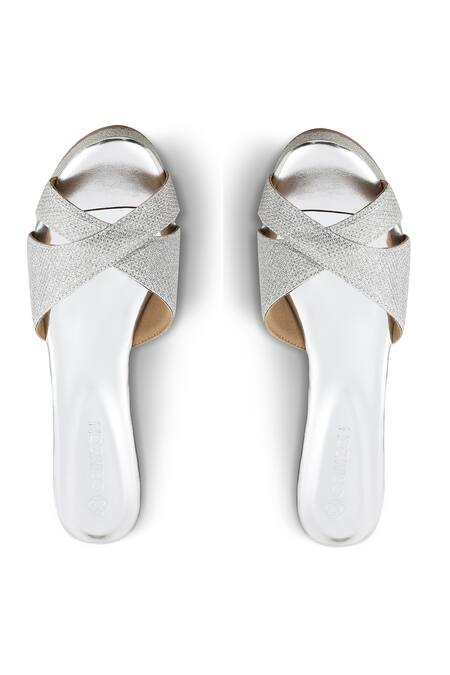 Silver Aiyana Criss Cross Shimmer Strap Wedges