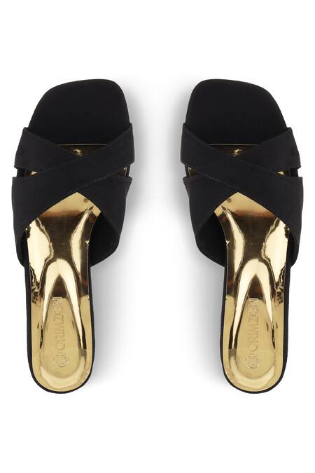 Black criss cross strap textured block heels featuring a plush 6mm padded insole