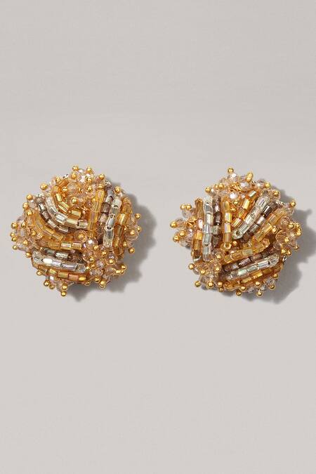 Buy_House Of D"Oro_Beige Stone Cryptopodium Beaded Cluster Studs_at_Aza_Fashions