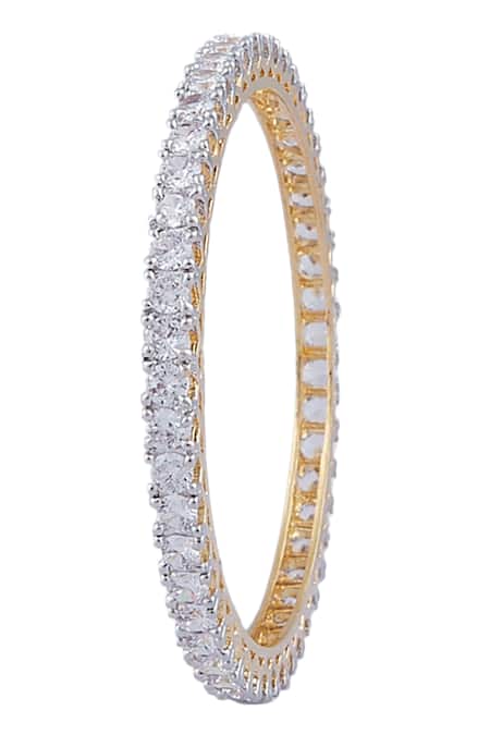 Zircon crystals embellishment on bangles, Mixed metal alloy construction, Dual-tone plating of gold and silver