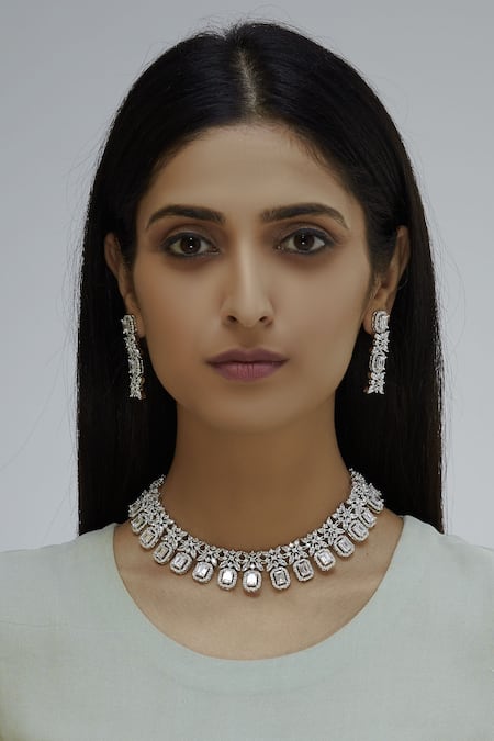 Crystal floral motifs on choker, Matching earrings with intricate design