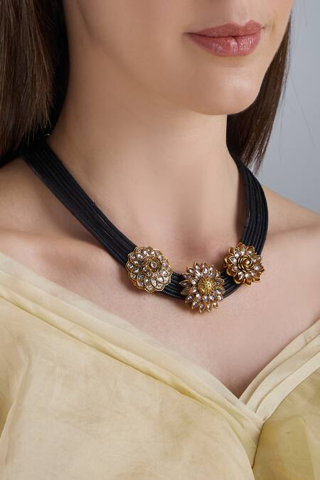 Buy_Rohita_Gold Plated Crystal Floral Choker_at_Aza_Fashions