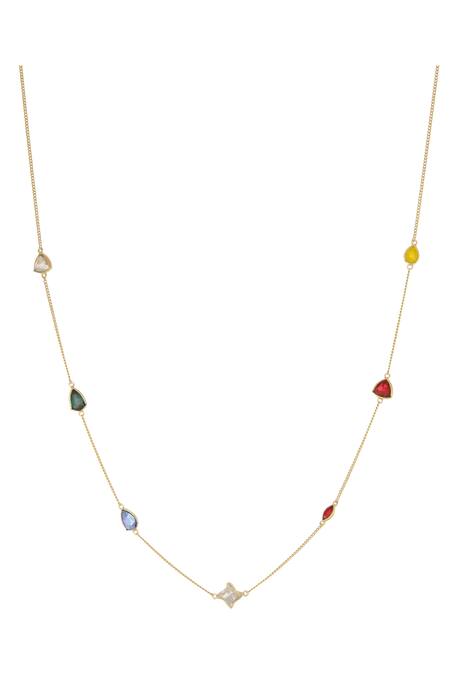 Gold-toned necklace with multicoloured swarovski crystal embellished.