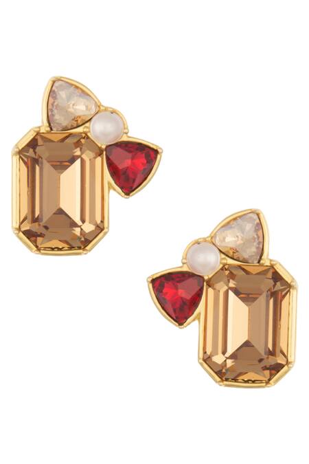 Gold-toned stud earrings with multicoloured swarovski crystal detail.