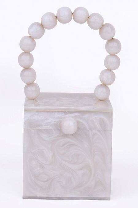 Buy_Handle Those Bags_White Cubical Marble Textured Bag_at_Aza_Fashions