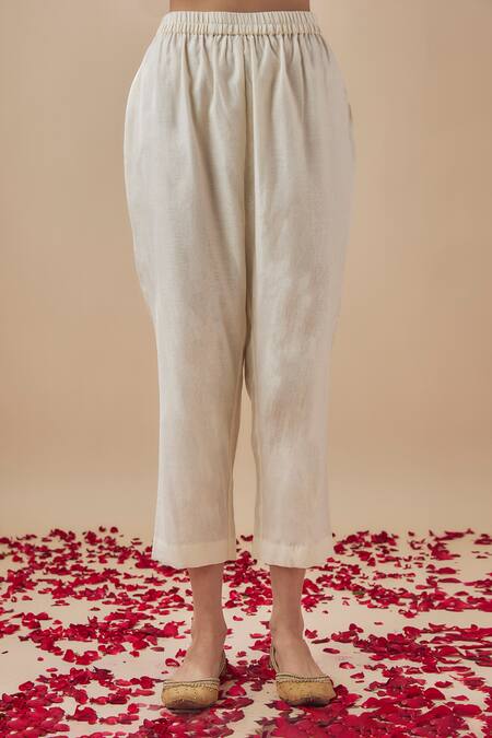 Ivory Organza, Chanderi Silk, Cotton Placement Aari Work Anarkali Pant Set