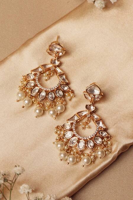 Gold Plated Stones, Pearls Glimmering Kundan Chandbali Earrings