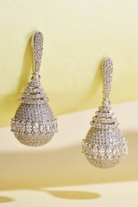 Intricate faux diamond detailing, Elegant teardrop shape, Push back closure for secure fit