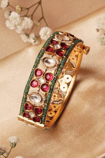 Gold bangle featuring delicate kundan detailing and handcrafted artistry.