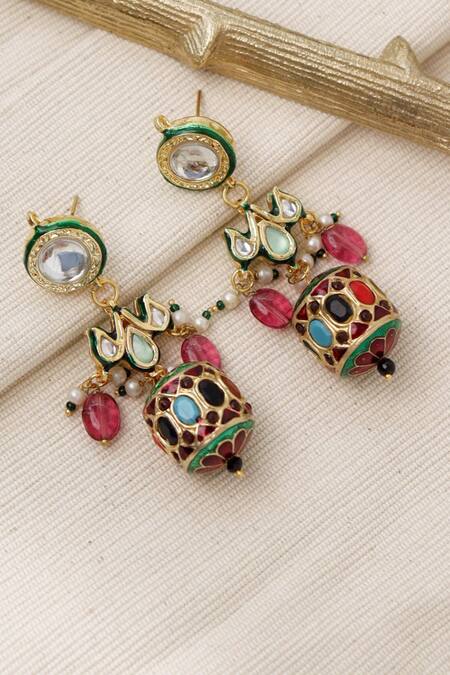 22kt gold plated dangler earrings featuring stone, pearl & kundan embellishments