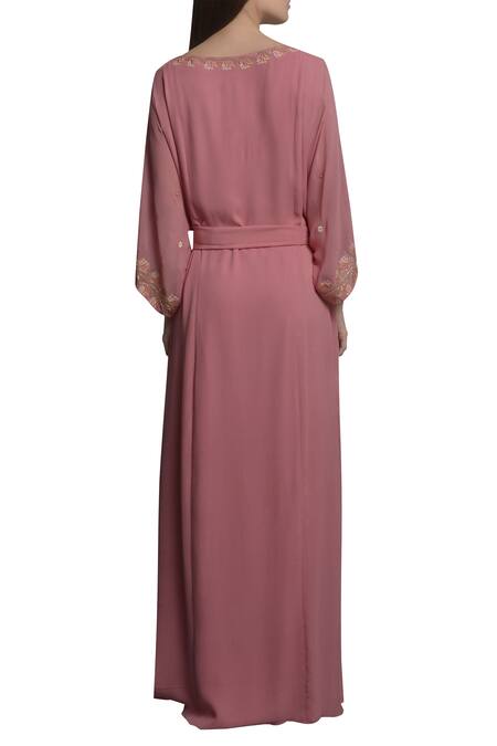 Buy_Mandira Wirk Resort_Pink Cutdana Embroidered Kaftan Dress_Online_at_Aza_Fashions