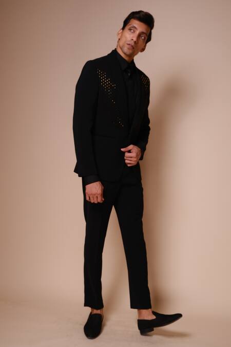 Black Tuxedo And Trousers- Viscose Polyester Embroidery Cutdana Set