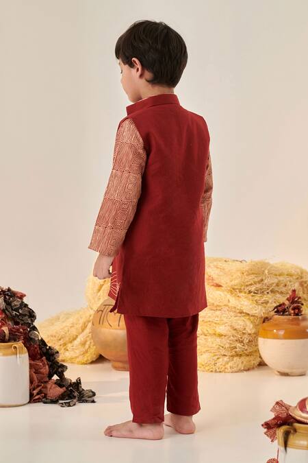 Buy_Cute Couture_Maroon Cotton Embroidery Bundi Kurta Set