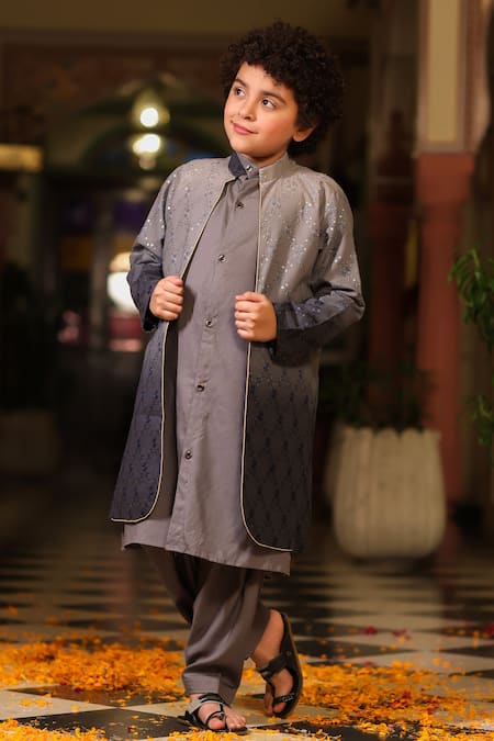 Buy_Cute Couture_Grey Rayon Sequins Embroidered Jacket And Kurta Set _at_Aza_Fashions