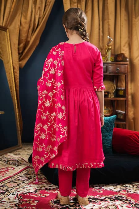Buy_Cute Couture_Pink Cotton, Silk Gota Patti Neck Embroidered Anarkali Set _Online_at_Aza_Fashions