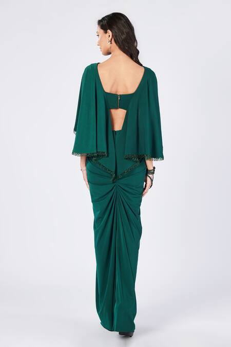 Emerald Green Polyester High Neck Cutout Draped Gown