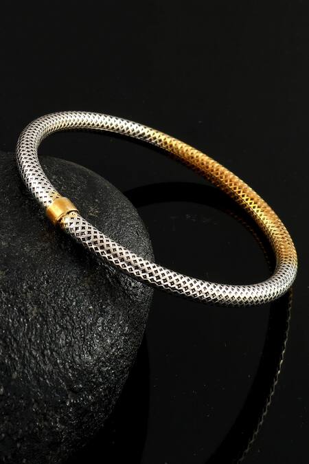 Intricate cutwork detail on the bangle, Two-tone gold and silver finish, Slip-on style for convenience