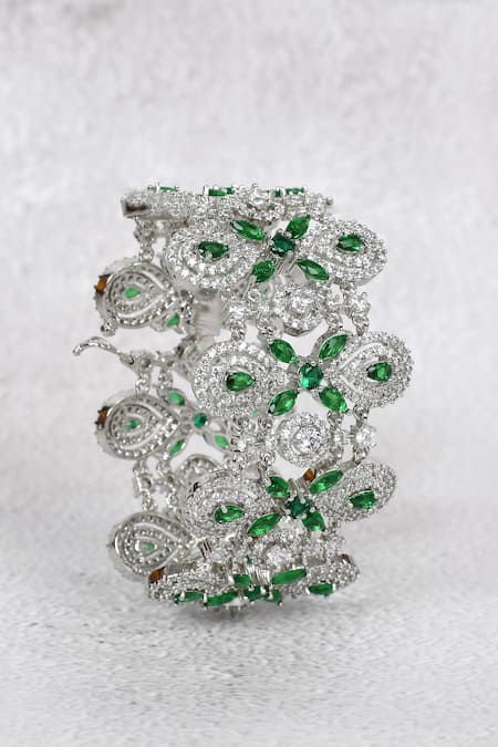 Buy_Auraa Trends_Silver Plated Imitation Diamonds Geometric Motif Bracelet _Online_at_Aza_Fashions