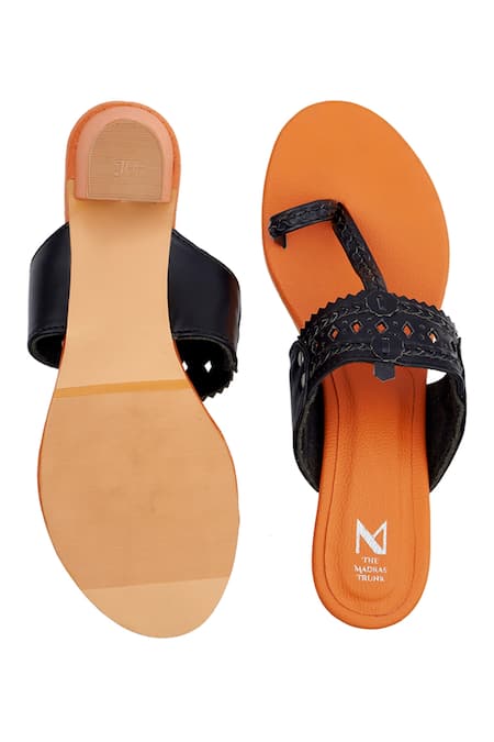 Buy_The Madras Trunk_Orange Cut Work Kolhapuri Block Heels _at_Aza_Fashions