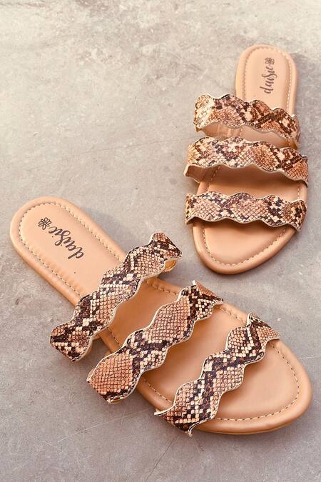 Brown Animal Print Triple Strap Flats
