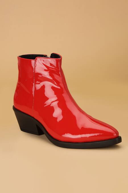 Buy_Dang Shoes_Red Stitchline Thread Joker Patent Leather Boots_at_Aza_Fashions