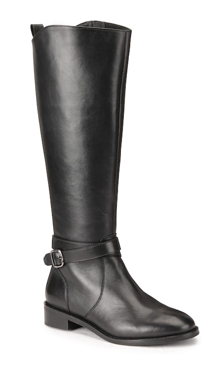 Black long boots crafted from genuine Egyptian crust leather featuring silver buckle detailing