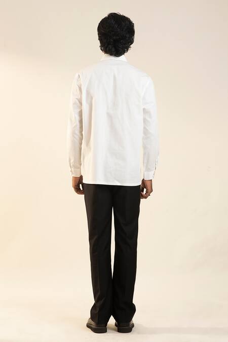 Buy_Dark Hour_White Cotton, Silk Patchwork Marble Effect Pocket Shirt_at_Aza_Fashions