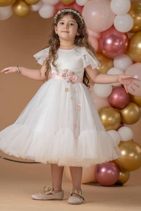 White Net, Satin, Taffeta Pearls, Sequins Flora Gown