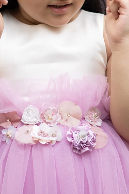 White Net, Taffeta Fabric Flowers Florence Floral Embellished Dress