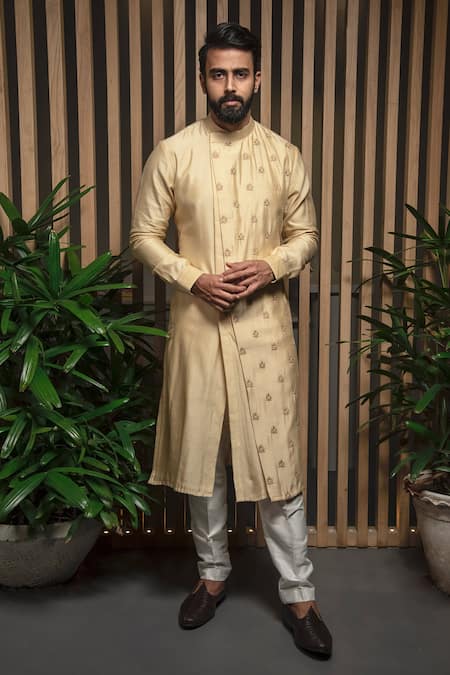 Beige Silk Embroidery Thread Placement Kurta Set