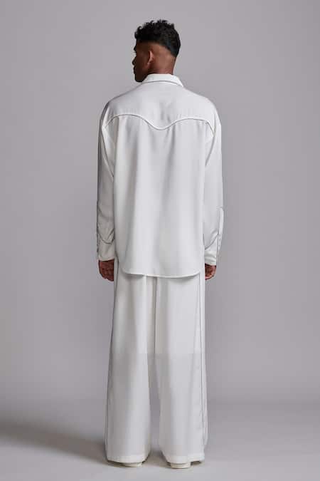 White Tencel Piping Contrast Piped Straight Leg Pant