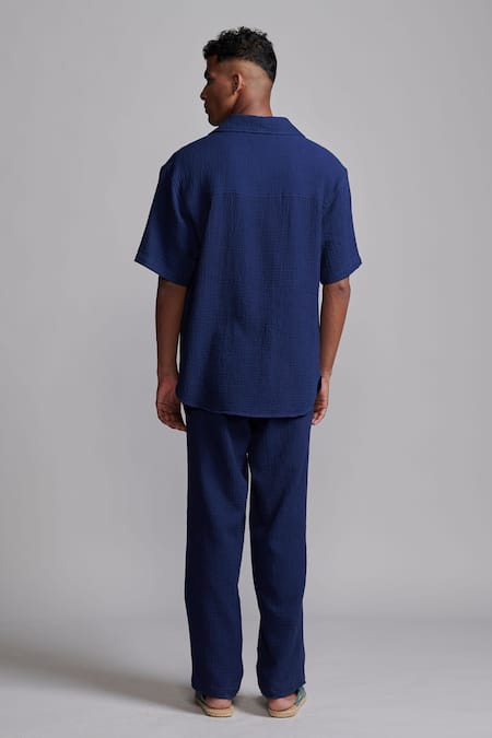 Blue Cotton Crinkled Textured Shirt And Pant Co-ord Set