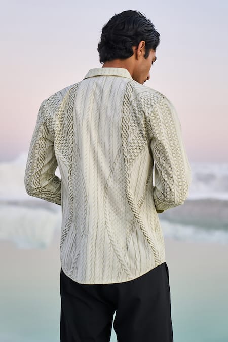 Multicolor shirt featuring a tonal cable knit pattern with a spread collar