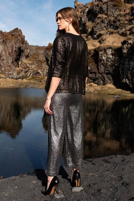 Silver embellished pant featuring sequins and a semi-elasticated waist