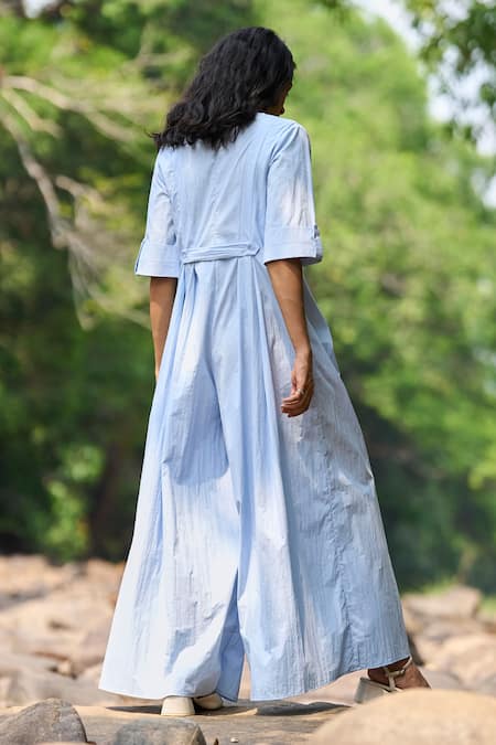 Sky Blue Cotton, Nylon Collared Tailored Wide-legged Jumpsuit