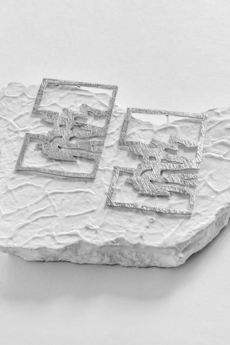 Shop_DE'Anma_Silver Plated Inguru Trellis Bliss Stud Earrings _at_Aza_Fashions