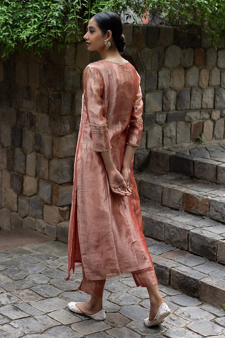 Pink Tissue Silk Zardozi And Sequins Round Embroidered Kurta & Pant Set