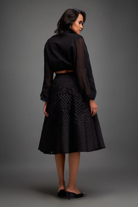 Black Organza, Polyester High Neck Plain Cropped Jacket
