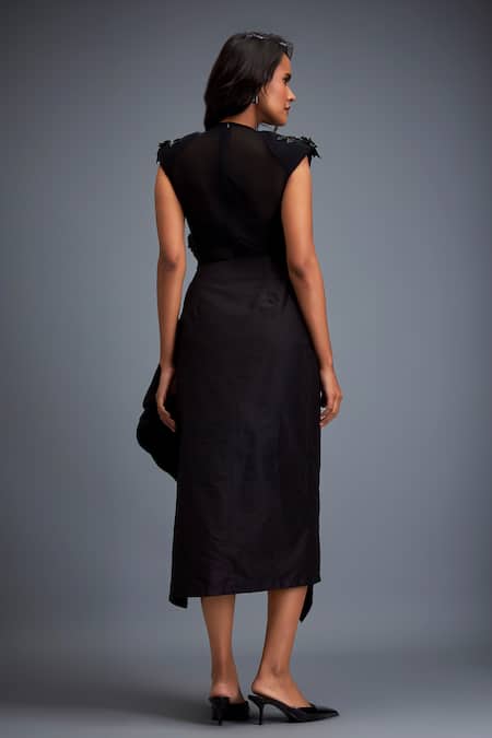 Black Tafetta Swarovski Round Crystal Embroidered Top And Skirt Set