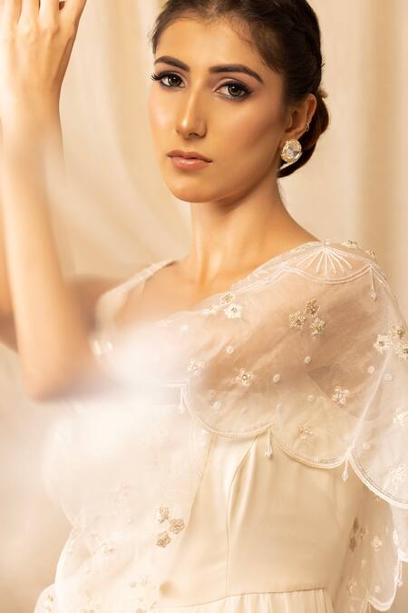 Buy_Deepika Chopra_Off White Georgette, Organza Zari, Flared Jumpsuit With Embroidered Cape_at_Aza_Fashions